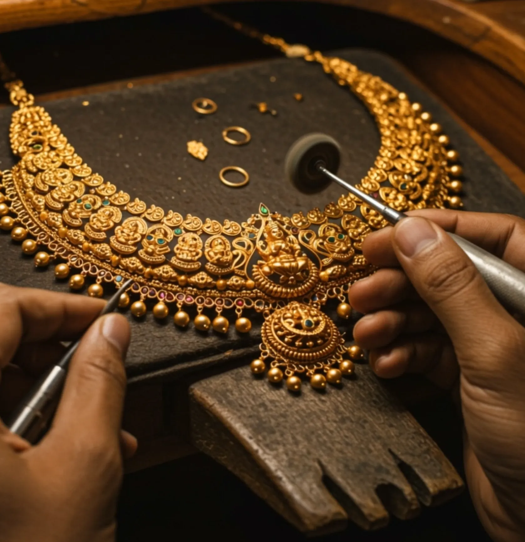 From handpicked, ethically sourced gemstones to certified diamonds of unmatched brilliance, every detail matters. Our expertise spans timeless gold, radiant diamonds, intricate kundan, and temple-inspired treasures. Our jewellery reflects our brand identity.